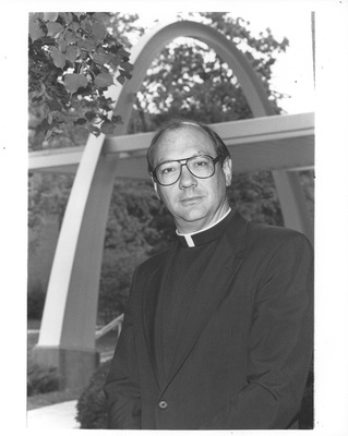 Portrait of Albert Joseph DiUlio, SJ, who served as president of Xavier University from 1986-1990. Photograph dated approximately 1990.
